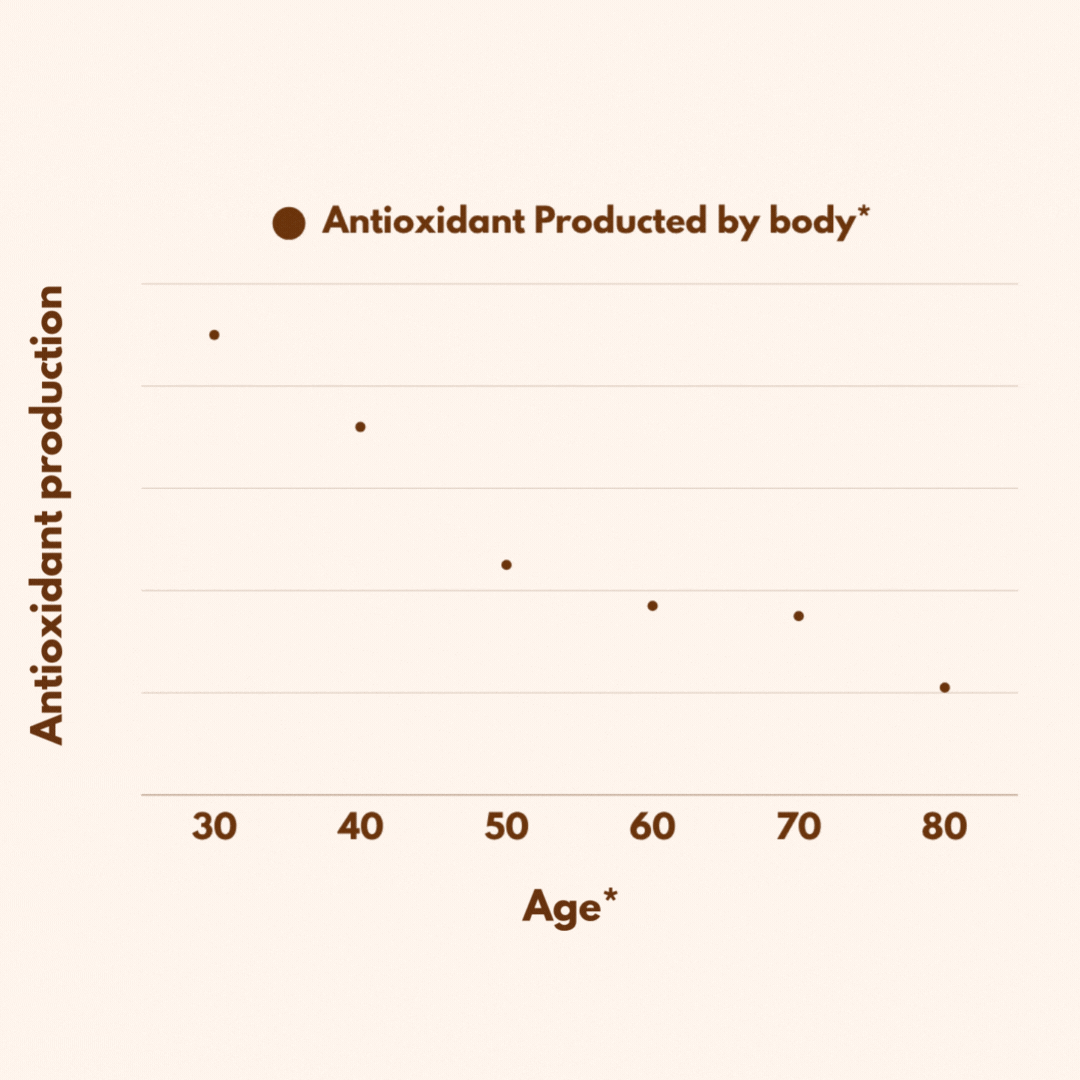 After the age of 40, your body naturally produces far fewer antioxidants, leaving your cells more vulnerable to oxidative stress and damage.