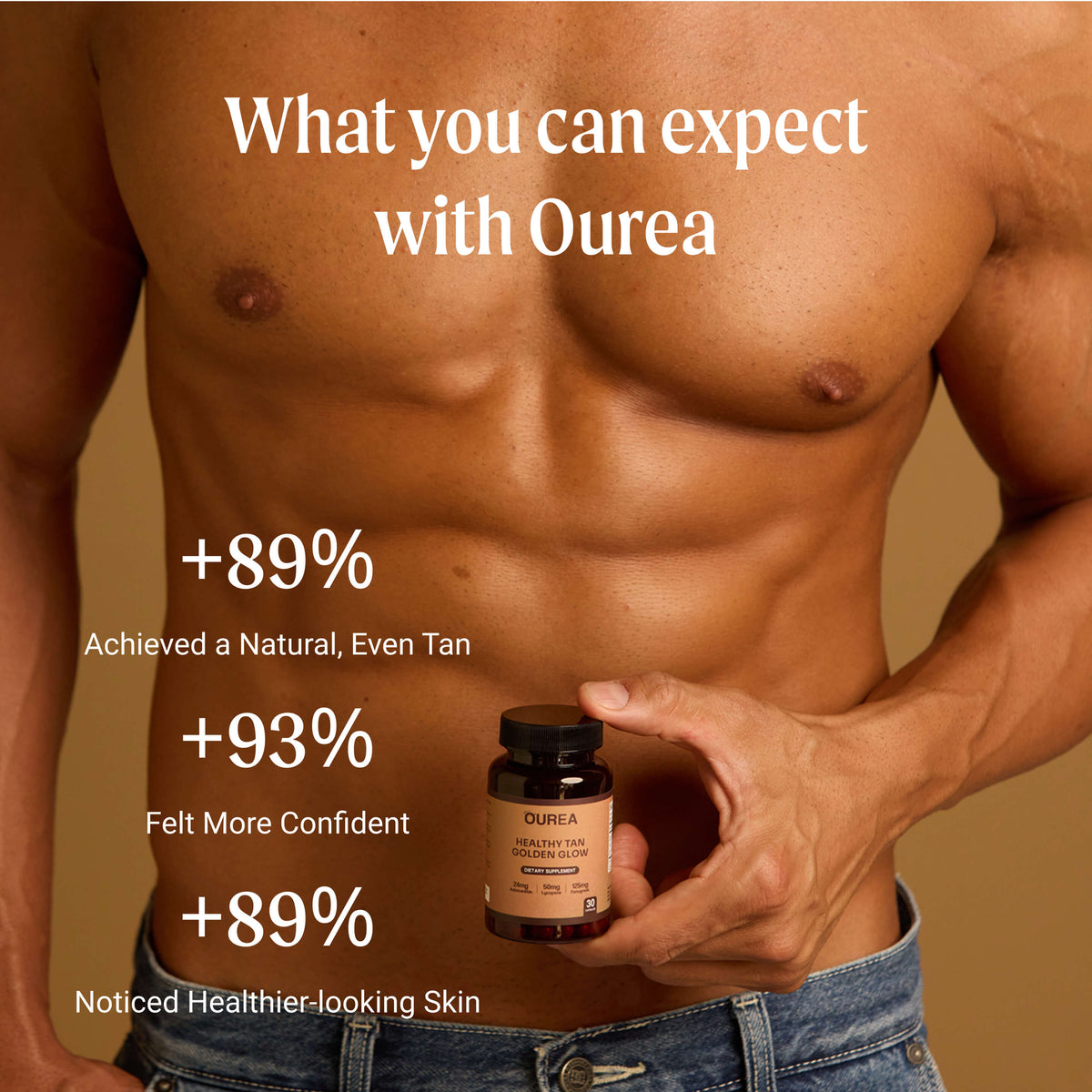 No. Ourea is not a self-tanner — it works from the inside out to give a natural golden glow without stains or fake tones.