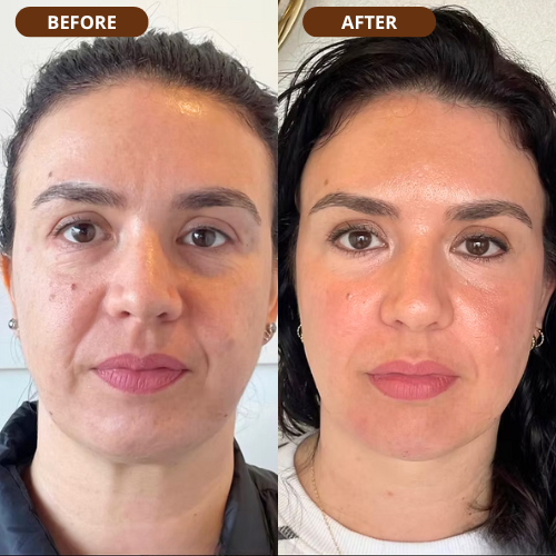 I’m 56, but people keep telling me I look closer to 40. I truly believe Ourea makes the difference. My dark patches have faded, my skin feels tighter, and I just look fresher overall. I recommend it to all my friends